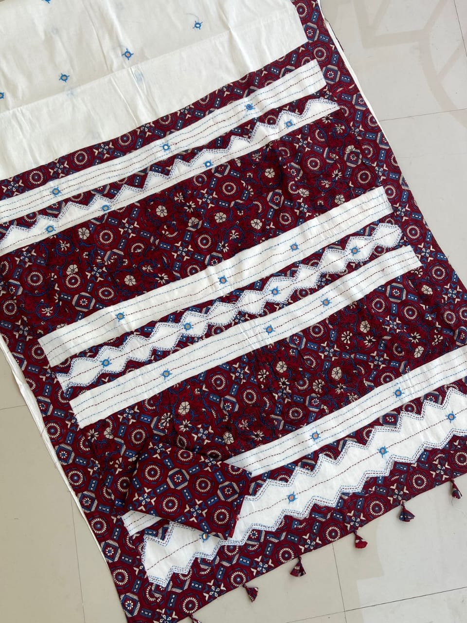 blouse- 1 meter ajrakh print fabric saree border and pallu matching